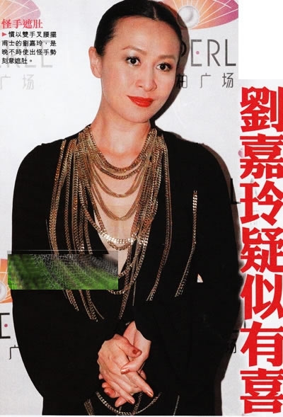 揭刘嘉玲疑似有喜 凸肚双下巴腰肢圆润