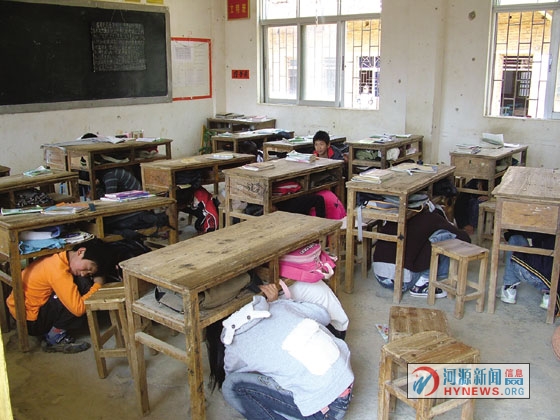 警报声响,师生们迅速离开座位,就近躲到课桌下,用手和书本护头。警报解除时,学生们在老师的带领下按照指定路线迅速撤离到安全地带。洋高小学的校长表示,该校本学期还将进行一次不预先通知的紧急疏散演练。