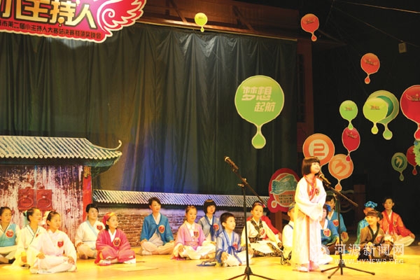 这是文艺表演吗?不,这是10月30日举行的“三友杯”河源市第二届小主持人选拔大赛总决赛的一个比赛环节。19名选手经过“糊涂学堂”、“星光大道”和“艺术人生”3个环节的激烈角逐,充分展示了各自的艺术才华、反应能力和语言表达能力。最后,张敏、潘瑶、廖聪煜、徐娜获得初中组前4名;钟昕羽、刁梦凌、陈乾、刘瑜琳、王家阳、孔祥鹏获得小学组前6名。这10名选手成为本届“十佳小主持人。”