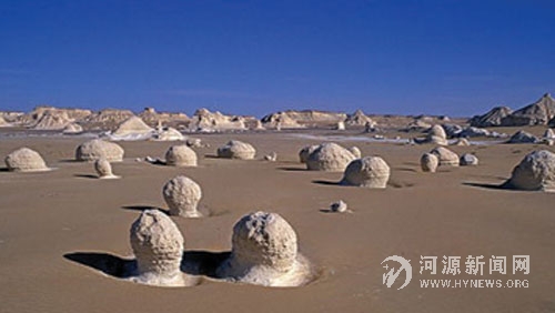 白沙漠位于埃及西部法拉法拉绿洲,这个奇特的景观是一个野营和旅游的好地方。高耸的白垩岩层屹立在埃及白沙漠中,仿佛是巨大的蘑菇群。它其实由数千年沙暴“雕刻”而成。