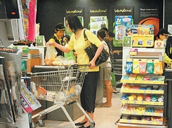 超市扫女性用品:吕方失恋10个月后,悄悄地跟比自己年长的吕有慧发展黄昏姊弟恋;日前更陪对方到超市买?生用品,尽显细心体贴。