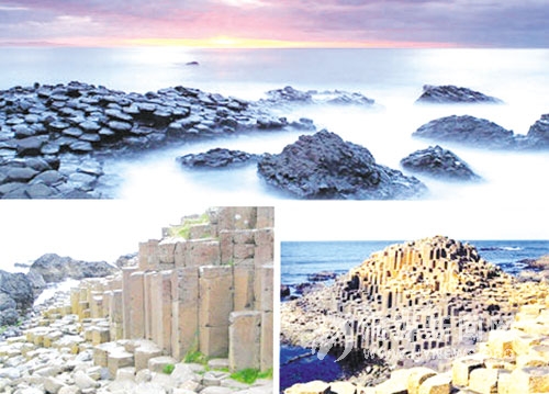 沿着爱尔兰铜锣湾海岸,六边形玄武岩柱巍然屹立,这块地方被称作“巨人之路”。这些类似古代铺路砖的岩柱,其实是5000万到6000万年前火山喷发的岩浆形成的。