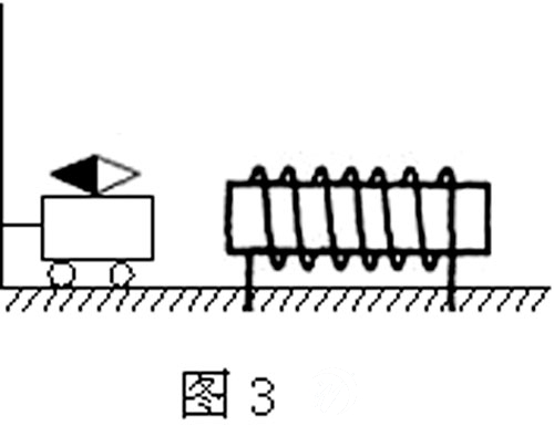 紧固在轻薄塑料小车上的磁针,使放在光滑平面上的小车运动,拉住小车的橡皮筋因而伸长,产生弹力与磁力相平衡,以小车运动距离的大小说明螺线管磁性的强弱。