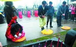 当日上午,张娜拉与父亲朱虎声来到李时珍的墓前,不料突降大雨,张娜拉为此准备的全套韩式跪拜大礼也未完全展示。据了解,为此活动牵线的是网络春晚,她与父亲合演了一出穿越到明朝找李时珍看病的小品。而张的外公又是韩医,遂产生了代外公前往医圣故里祭拜的愿望。张父朱虎声称,张娜拉外公对中医推崇备至,“娜拉小时有病痛,都是靠针灸和草药治疗,李时珍和《本草纲目》她更耳熟能详。”
