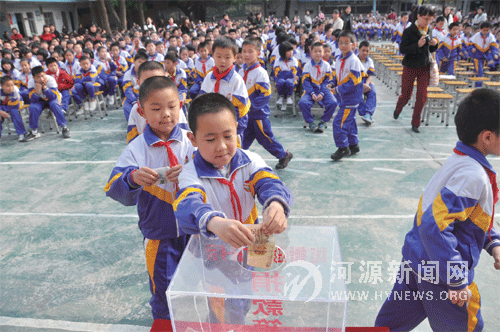 近日,源城区“捐赠爱心压岁钱,幸福广东第一棒”活动启动仪式在源城区下城小学举行。各班同学排着队走到捐款箱前,捐出自己的压岁钱,1 元、2 元、10 元、20 元甚至100 元……爱的暖流顿时溢满整个校园。接下来,该活动将在全区中小学间陆续开展。据了解,由团省委、省少工委发起的“捐赠爱心压岁钱,幸福广东第一棒”活动,倡议广大少先队员用好压岁钱,为困难的小伙伴们奉献爱心,以帮助留守少年儿童等弱势少年儿童群体改善成长环境。