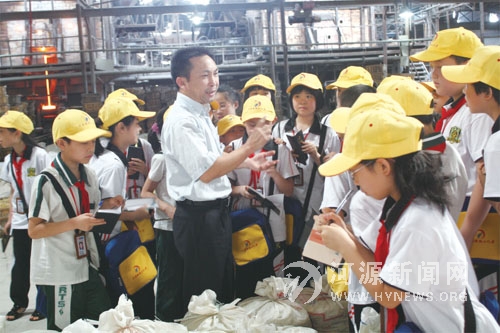小记者们在听管理人员介绍企业生产情况。近日,河源晚报河源中英文实验学校小记者站的30 多名小记者参观采访了东源联星玻璃马赛克有限公司。通过采访,小记者们深深感受到了工人们劳动的光荣和创业的艰辛。活动拓宽了小记者们的视野。