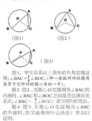 例3、教《圆周角和圆心角的关系》时,我设计了一组探究题: