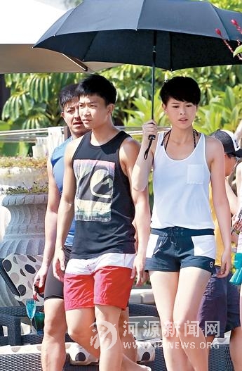 胡杏儿明显对周志文特别照顾,一把与周两人分享一把伞遮阳。拍摄泳池戏份时,周志文一样靠近胡杏儿,片刻不分开。