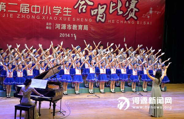 昨天下午,河源市第二届中小学生合唱比赛总决赛在市会议中心举行,《时间都去哪了》、《七色童年》等一首首歌曲令现场观众如痴如醉。本次决赛共有来自全市中小学校26 支代表队的1300 多名学生参加。据悉,在全市范围内开展中小学生合唱比赛活动,旨在营造中小学艺术教育教学与实践的良好氛围,有效地促进全市中小学校艺术教育事业的发展和提高。