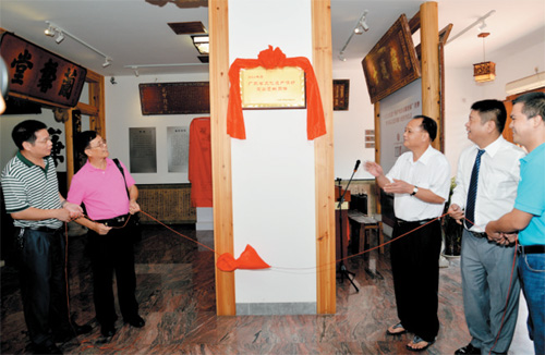 19 日,省文物保护基金会及市文广新局相 关负责人为鸿志中基客家文化博物馆获得 “2014 年广东省文化遗产保护突出贡献团体 奖”进行挂牌。同时,博物馆还聘请网络红人 “客家妹妹”钟彩媚担任“鸿志中基客家文化传 播大使”。活动结束后,我市青年画家顾贵清 还举办了一场《砚边偶得》国画小品展,吸引了 众多市民观赏。