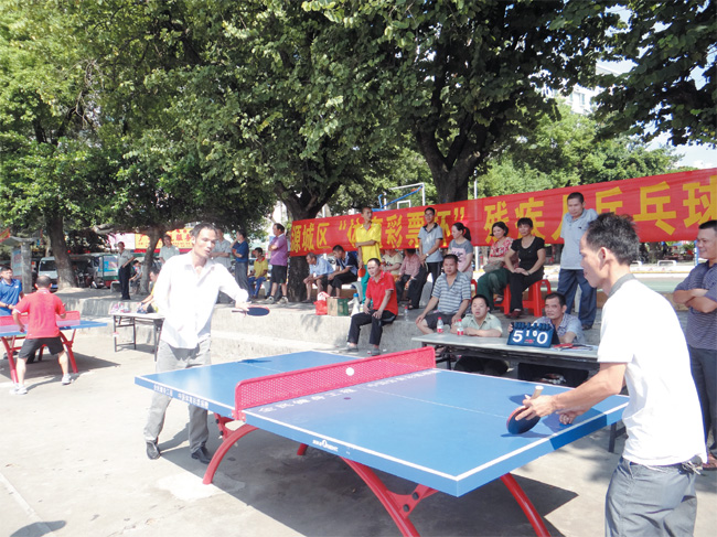 日前,由源城区体育局主 办的“体育彩票杯”残疾人乒乓 球赛在老城公园广场举行,比 赛分为肢体站立组、肢体轮椅 组等6 个小组,共有80 名残疾 人乒乓球爱好者参加了比赛。 据了解,残疾人乒乓球赛是广 东体彩“健康广东体彩助力” 资助的诸多项目之一,该活动 通过向社会公开征选赛事的方 式进行,旨在彰显体育彩票的 社会责任,提升体育彩票的公 益形象。