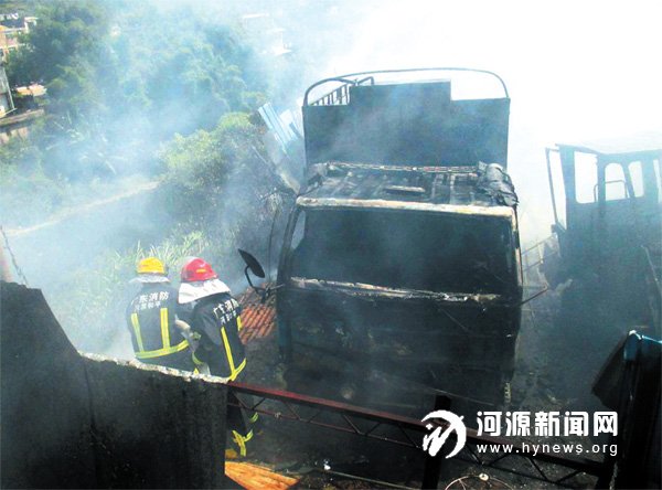前日上午11 时29 分,和平县康平医院往下500 米处一废品店里,一辆报废货车突然自燃着火,导致废品店被烧。和平消防中队接报后赶赴现场,经侦查原来报废货物被暴晒后引发自燃,火势迅速蔓延至旁边的废品。消防官兵经过10 分钟扑救,终于将明火扑灭,所幸火灾未造成人员伤亡。