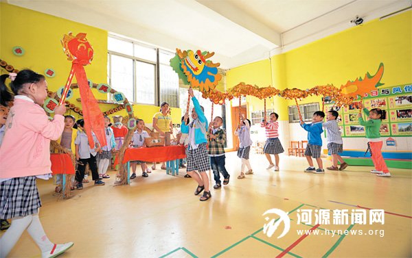 昨日上午,源城区机关幼儿园内孩子们正在学习客家舞龙表演。记者了解到,该园自去年举行市级教研课题《河源客家文化在幼儿教育中的运用研究》以来,研究成果显著,得到了专家和社会各界的一致肯定,该园在幼儿教育中开展客家文化主题教育,布置客家风情长廊,创设情景化的活动环境,让学生真实体验客家风情,从小了解客家文化。