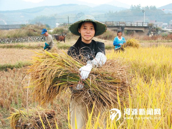 昨日,东源县曾田镇曾田村田间一派晚稻秋收的忙碌景象。记者了解到,连日来,我市各地农村趁天气晴好,陆续开始收割晚稻。据了解,今年晚造全市杂交水稻种植面积约103 万亩,由于今年气候风调雨顺,晚稻产量普遍比去年增加。
