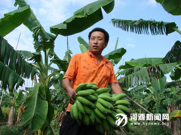 眼下正是香蕉收获季节,记者近日在连平县忠信镇司前村看到,香蕉种植基地里一派硕果累累的丰收景象。据当地梁姓种植户介绍,今年香蕉价格不错,收购最高价每公斤卖到了 9.2 元。据了解,近几年来,一些种植户瞄准紫金、连平县等地适宜发展香蕉产业的资源优势,纷纷前来承包土地大规模种植香蕉,并带动了当地农民效仿,取得了显著的经济效益。
