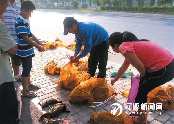 “山鸡130 元1 只、斑鸠100 元3 只……”19 日上午8 时许,记者在市区永和路看到,3 名男子提着数十网袋的禽鸟当街向市民兜售,这3名男子自称禽鸟都是野生的,有山鸡、野鸭、斑鸠等。记者在现场看到,有不少市民走近讨价还价,也有人掏钱购买。有市民表示,如果真是野生禽鸟,是否涉及贩卖保护动物;更担心这些禽鸟来路不明,会存在携带禽流感病毒的风险。