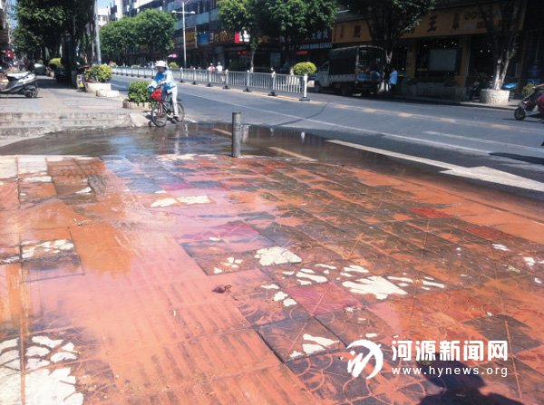 昨日上午11 时许,有市民报料称,市区大同路与兴源路交会处附近人行道下的供水管爆裂,自来水大量渗出路面。记者赶到现场看到,人行道的路面开裂,砖块一边向上凸起,水从裂缝往上渗,附近数十米人行道被水浸泡,路过行人被迫绕行。记者随即致电市自来水公司报修,工作人员很快到场抢修。
