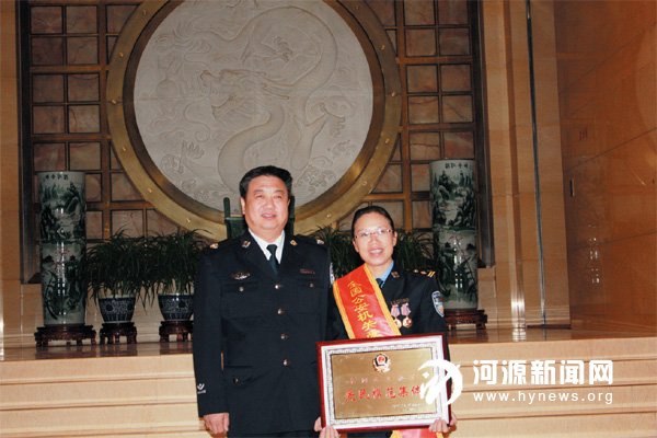 28 日,公安部在北京举行全国公安机关爱民模范先进事迹报告会,全国公安系统100 个爱民模范集体和100 名爱民模范受到表彰。我市公安局交警支队江北大队女子中队荣获“全国爱民模范集体”荣誉称号,该中队中队长池静作为代表出席会议并领奖。图为池静与副省长、省公安厅厅长李春生在会议现场合影留念。