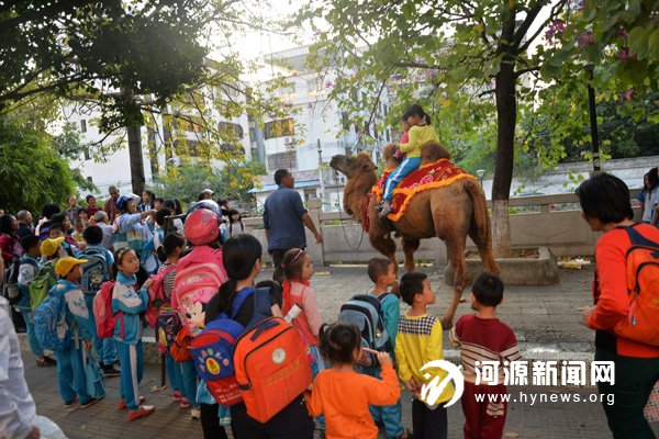 前日下午,在市二小旁边的社区小公园里,一男一女牵着一头高近2 米、身长3 米多的骆驼,在路边做起骑骆驼照相收费的流动生意,引得不少小学生纷纷骑上骆驼合影。记者在网上查询到,因在闹市中骑骆驼照相,骆驼受惊或发怒伤人的事件时有发生。也有市民担心,动物身上难免带有跳蚤等寄生虫,有可能携带病菌,提醒市民要小心。