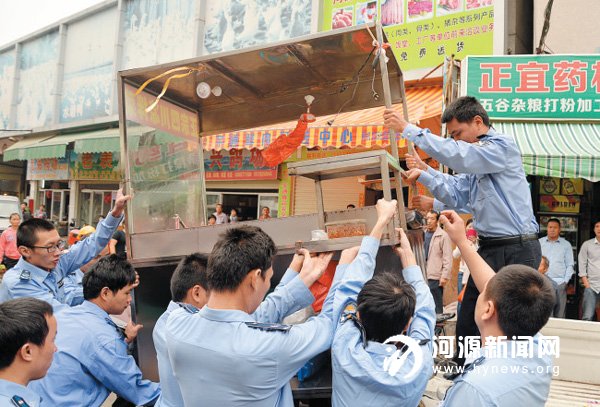 市区老城中心市场,执法人员清除乱摆卖的摊贩。昨日上午,源城区10 部门联手开展整治农贸市场周边专项行动,以巩固前期整治成果,整治行动将持续1 个月。据了解,11 月中旬,我市将迎接中央文明委对创文工作的检查。此次行动主要对上城辖区、新江辖区、源南辖区和东埔辖区内的市场及周边地区的市容环境卫生,乱摆卖、乱停放等“六乱”行为进行全面集中整治。