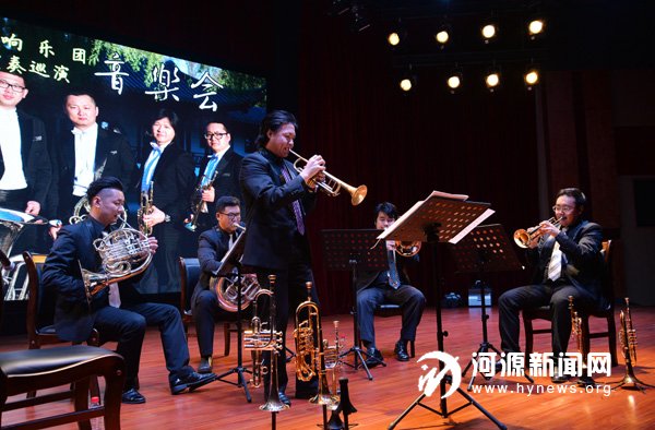 前晚,“我们的中国梦——全省优秀舞台艺术作品巡演”走进河源,巡演的节目是由广州交响乐团献演的“ 铜管五重奏音乐会”。音乐会在强劲动感的《查拉图斯特拉如是说》交响诗中拉开序幕,五位年轻的演奏家为现场近300 位嘉宾演奏了《号手的假日》、《拾荒者》、《平湖秋月》、《凯旋进行曲》等中外经典名曲,小号的热烈、长号的悠长、圆号的圆润与大号的雄厚相互交替,使音乐风格变得颇为新鲜和有趣,为大家带来了一场听觉盛宴。