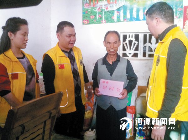 前日下午,广东狮子会河源东江服务队带着慰问品和慰问金,深入到东源县船塘镇黄沙村部分贫困户家中开展扶贫济困献爱心活动。据了解,当日该服务队看望了黄沙村12 户贫困村民,给他们送去了价值近2 万元的慰问品。
