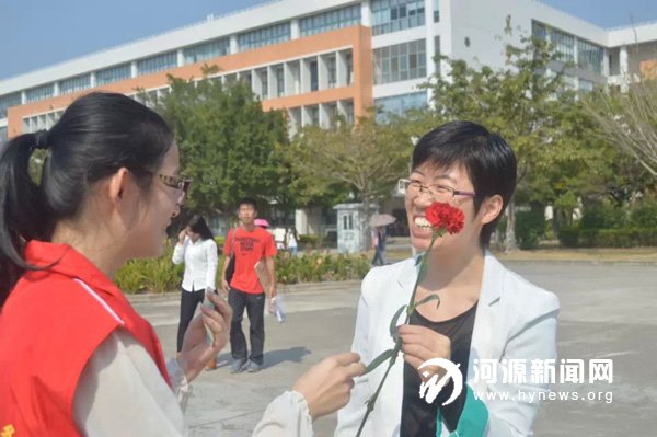 在感恩节来临之际,源城区明镜社会工作服务中心的义工们在河源职业技术学院组织开展了感恩活动。这些义工均为河职院的在校学生,他们手捧康乃馨,给传道授业的恩师送上鲜花的同时,送上一个深情的拥抱,让老师感受到他们浓浓的谢意。