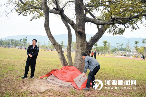 日前,记者接到连平县城群众报料称,投入1300 万升级改造的县城体育中心成了市民休闲锻炼的好去处,但是11 月中旬,有人偷偷在体育中心内一棵大树下建起了一座“墓碑”,让人心惊惊。前天,记者前往现场了解情况,一名自称体育中心主任的男子看见记者拍照急忙上前阻止,并把“墓碑”盖上,只说此事正在协调处理。