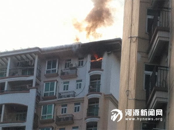 昨日上午9 时许,市区永福路雅居悦小区 16 楼一间房屋内发生火灾,所幸未造成人员伤亡。记者在现场看到,着火房屋不断冒出浓烟,阳台处可看见明火,文昌消防中队出动 3 台消防车将火扑灭。据了解,着火地点是一间卧室。
