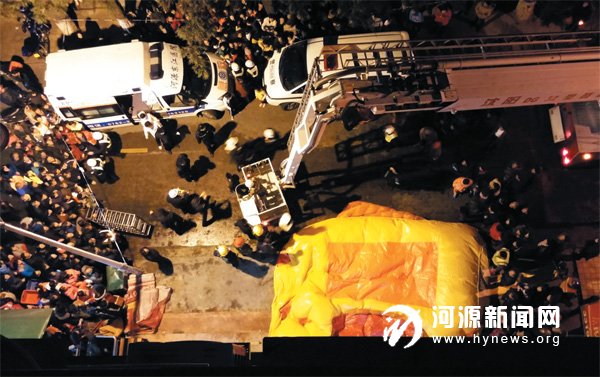 前日18 时10 分左右,老城环城西路某小区,一女子正“挂”在5 楼防盗窗外,脚踩在窗沿上,情绪异常激动。据现场人员称,该女子系因与家人发生矛盾,激动之下,欲跳楼轻生。见此情景,现场消防指挥员立即打开救生气垫,并向轻生女子喊话交流,耐心劝导。但该女子不听劝导,只是不断要求取得手机对外联系。指挥员灵机一动迅速想到了救援方案:由劝导人员携手机利用云梯车慢慢接近该女子。