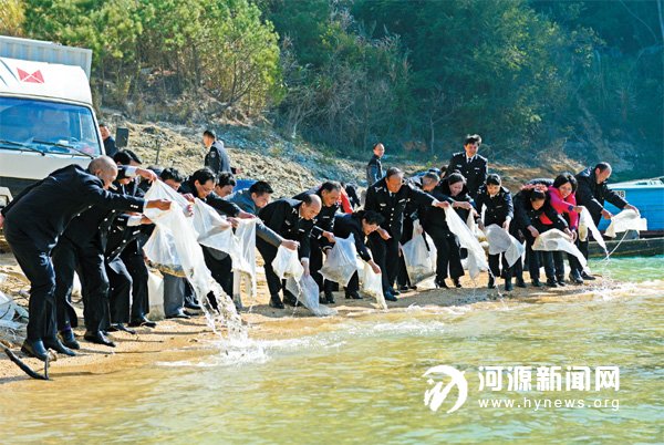 昨日上午,又一批鱼苗被放生至万绿湖。据了解,这次增殖放流活动的鱼苗主要有草鱼、鲢鱼、鳙鱼、鲤鱼等本地当家品种,数量为65.4 万尾。据广东渔政总队河源支队提供的数字显示,2014 年全市江河库区鱼类增殖放流数量达986.5 万尾,主要投放鱼苗品种有草鱼、鳙鱼、鲤鱼、鲢鱼、鲮鱼、光倒刺耙、鲫鱼等。