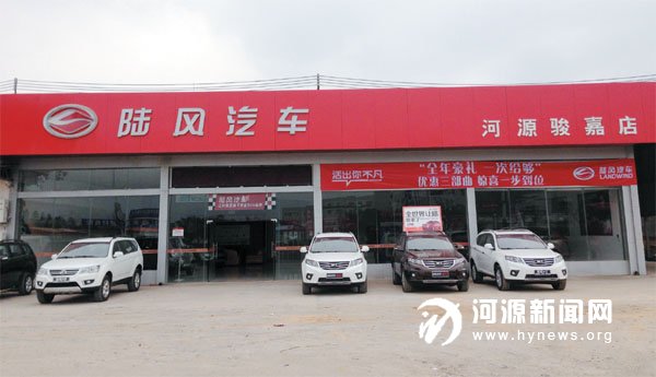 河源市骏嘉汽车销售服务有限公司是江铃陆风汽车河源地区唯一一家陆风授权经销商,公司是严格按照江铃陆风汽车有限责任公司所采用的国际先进的“汽车销售服务、配件销售及售后服务”的模式要求建立。展厅位于河源市源南镇风光 205 国道东边桂山旅游大道南(即桂山路口旁),拥有500 平方米展厅,现主打车型有陆风X5(6 速手动和8 速自动)、陆风X8(柴油版、汽油版、两驱、四驱)、陆风X9(两驱、四驱)、陆风风尚(七座)。店内还设有专业改装件展示区,俱乐部活动中心等特色服务。