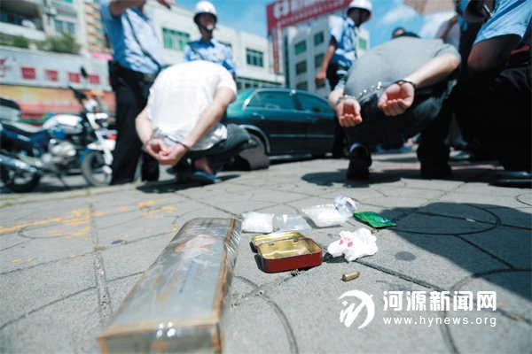在平安创建工作中,公安机关抓捕现场。