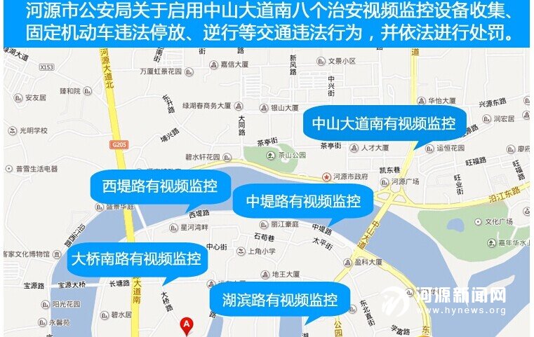 市公安局决定从2014年10月1日起,利用中山大道南视频监控编号为3001、中堤路视频监控编号为3031、西堤路视频监控编号为3048、4014、大桥南路视频监控编号为4028、4031、湖滨路视频监控编号为3029、3030等八个治安视频监控设备,收集、固定机动车违法停放、逆行等交通违法行为,并依法进行处罚。