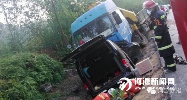 当天下午4时11分左右,一辆车牌为粤LL33XX运送水泥的货车,从惠州往紫金方向行驶,行驶至省道s120线188km+350m好义镇杉树坳路段时,先后与相向行驶的粤Lws3XX的小轿车和粤B3xkXX面包车发生碰撞,导致粤Lws3XX小轿车撞在山沟上,造成粤B3xkXX面包车上7人死亡,1人重伤。
