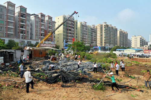 清拆行动共需帮拆房屋9栋、清拆违章建筑28宗,占地面积4600平方米,建筑面积5200平方米;共需清表5000平方米。其中,兴源东路清拆违章建筑28宗,占地面积约4000平方米。清表4000平方米。文昌南路帮拆房屋9栋(均为合法建筑),占地面积600平方米,建筑面积约1200平方米。清表1000平方米。