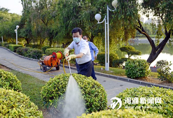本报讯(记者 谢素婵)昨日,省政府组织统一开展以防蚊灭蚊为重点的爱国卫生运动,市长彭建文率队来到市文化广场,戴上口罩和手套,拿起喷雾器,和工作人员一起喷药灭蚊。