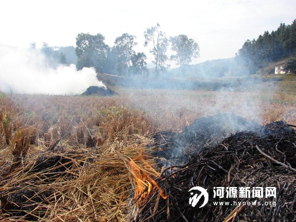 10 月28 日,源城区埔前镇南陂村,不少刚收割完稻子的村民就地焚烧秸秆,四处浓烟滚滚,周围村庄笼罩在一片烟雾之中,能见度极低(详见本报10 月29 日报道)。目前正值秋冬时节,天干物燥,市区近郊一些村民图省事,在田间地头随意焚烧垃圾或秸秆,带来浓烟滚滚,给市区空气质量造成很大影响。