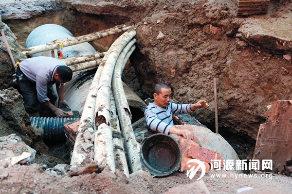 施工人员正在改造地下排水管道。