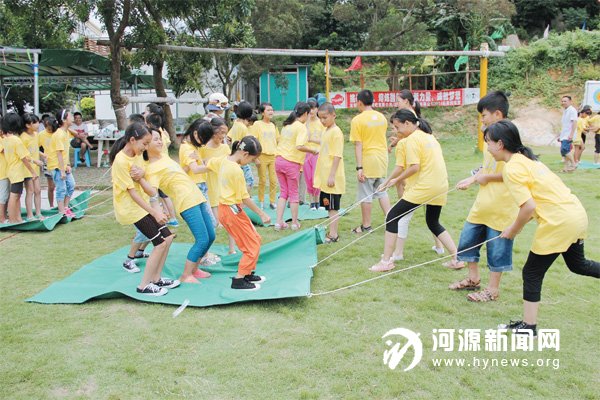 留守儿童在福彩夏令营的拓展活动中玩得欢。