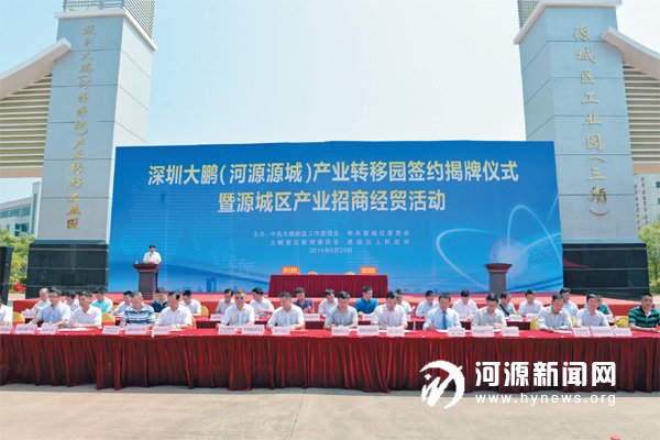 深圳大鹏河源产业转移园昨举行签约揭牌仪式