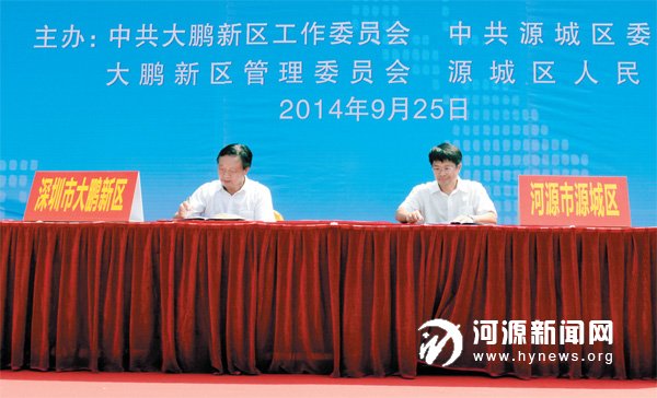 深圳大鹏新区与源城区签订产业转移工业园合作共建协议。