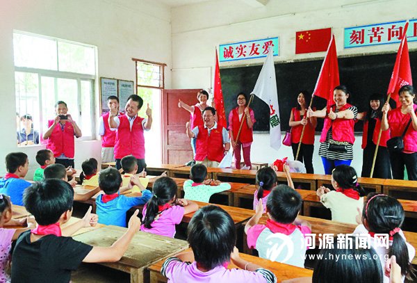 河源视窗公益服务中心、仁爱天下志愿者联盟服务中心组织志愿者分别到紫金县敬梓镇冯坑小学、东源县曾田镇中心小学开展“情系山区留守儿童”关爱活动,志愿者们与留守学生开展互动活动(如图),并为他们送上书包等学习用品。