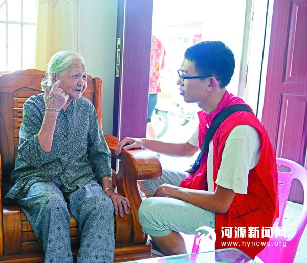 市嘉艺青年慈善公益服务中心组织志愿者开展关爱百岁老人志愿服务活动。图为志愿者来到源城区白岭头叶屋看望102岁高龄的李三英老人,陪伴老人闲话家常,并为老人送上了慰问品。见习记者 朱冀 摄