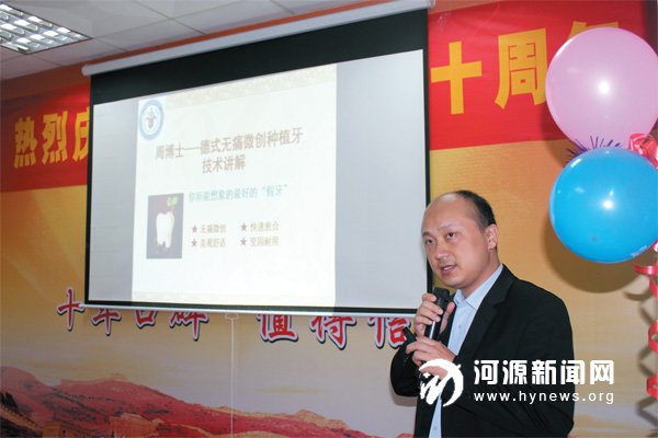 11 月29 日上午,位于新市区沿江路九龙商业城的康华口腔门诊呈现一派喜庆氛围,来自广州、河源市区口腔领域的专家以及前来参与免费种植牙抽奖的20 多名患者,一起参与了康华口腔10 周年活动庆典。