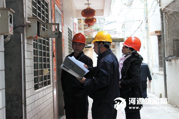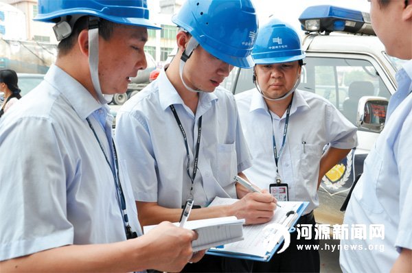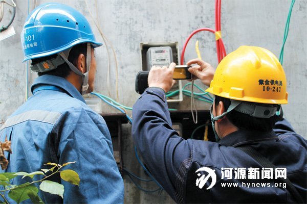 供电部门工作人员对窃电嫌疑用户的电表进行现场勘查确认。