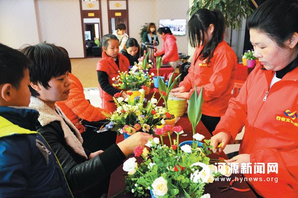 市民在专业教师的指导下学习插花。