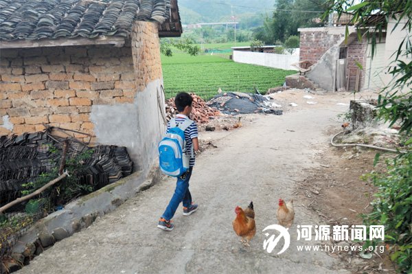 每天下课后,谢泽源跟学校的其他孩子一样,一人独自步行回家。