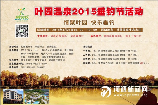 即日起,有意向参与活动市民,可以在4月22日前,到游天下旅行社各营业网点或叶园温泉销售部报名,详情请咨询0762—3822855,3398777。