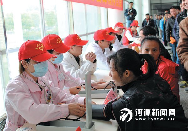 我市各地各单位纷纷组织党团志愿者开展形式多样的“学雷锋献爱心送温暖”志愿服务活动。图为龙川县团委组织志愿者来到景旺电子厂,为该工厂员工提供免费理发、消防宣传和医疗等服务。本报记者 陈仕 平通讯员 黄锐敏 摄